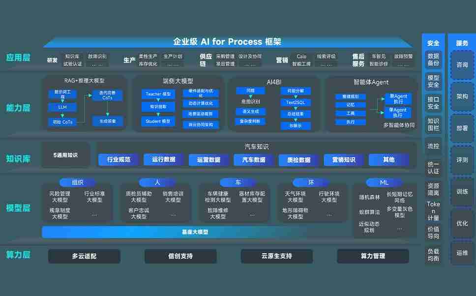壹号娱乐问学智车解决方案是一套基于AI技术的汽车行业智能化系统,,覆盖从底层算力到顶层AI应用的全栈方案。。。方案由算力层、、、模型层和应用层组成:算力层,,,方案支持多种一体机配置,,,具备云端灵活部署、、、、多云适配以及动态优化计算资源的能力;模型层,,壹号娱乐问学平台版提供了企业级AI应用一站式构建与管理平台,,,,支持基于后训练强化技术的汽车企业专属模型的训练、、、评测和运营;应用层,,,,壹号娱乐问学DeepSeek版提供包括超级员工、、、、智能招采、、、、智能营销、、、智能客服、、AI for BI等一系列解决方案,,,可助力汽车行业实现数字化转型,,,让管理更智能、、、、响应更敏捷。。